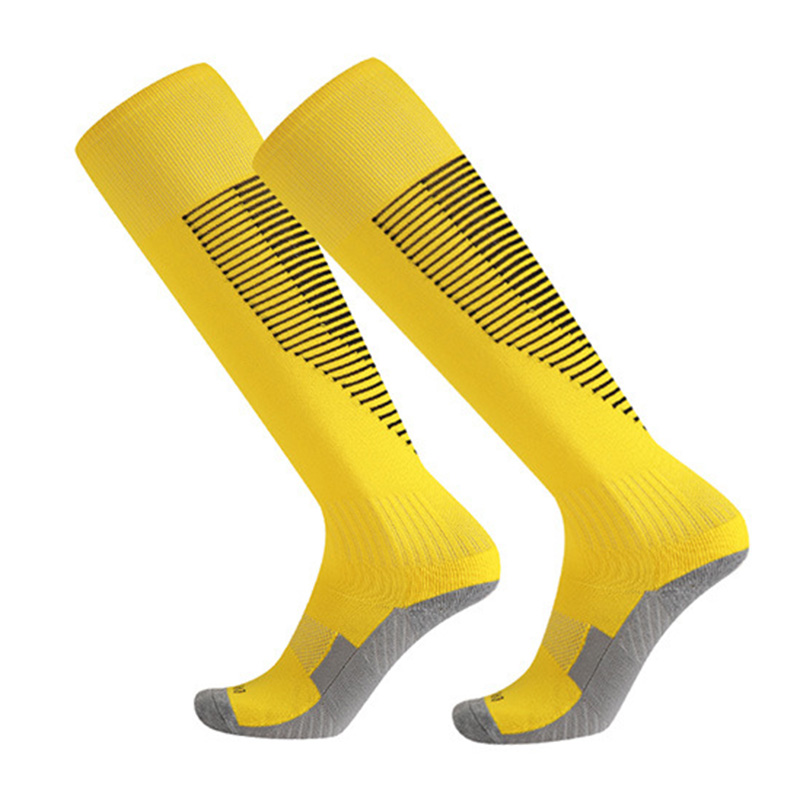 These highly elastic, cushioned polyester soccer socks are suitable for soccer training, matches, and various sports scenarios, making them an ideal choice for sports equipment that combines comfort, functionality, and durability.